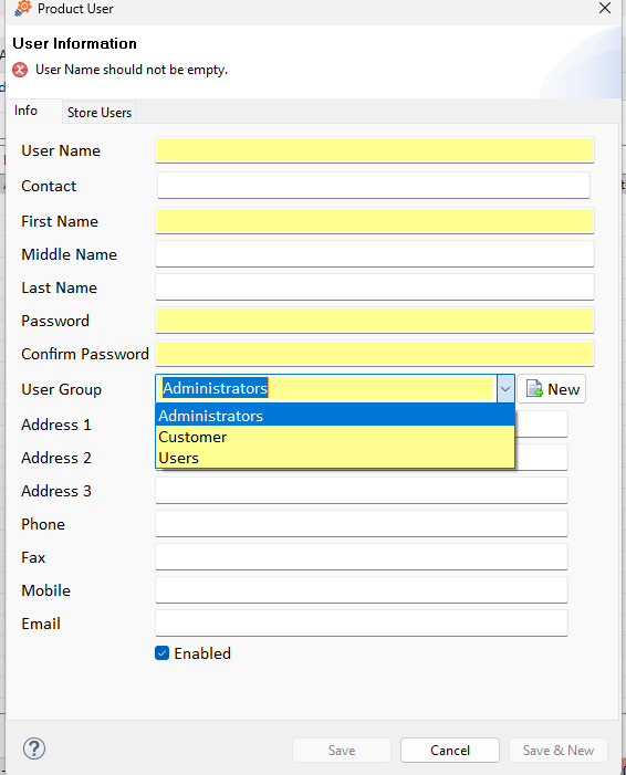 After adding details in user group select “Users” and In Store Tab select the Stores as well.